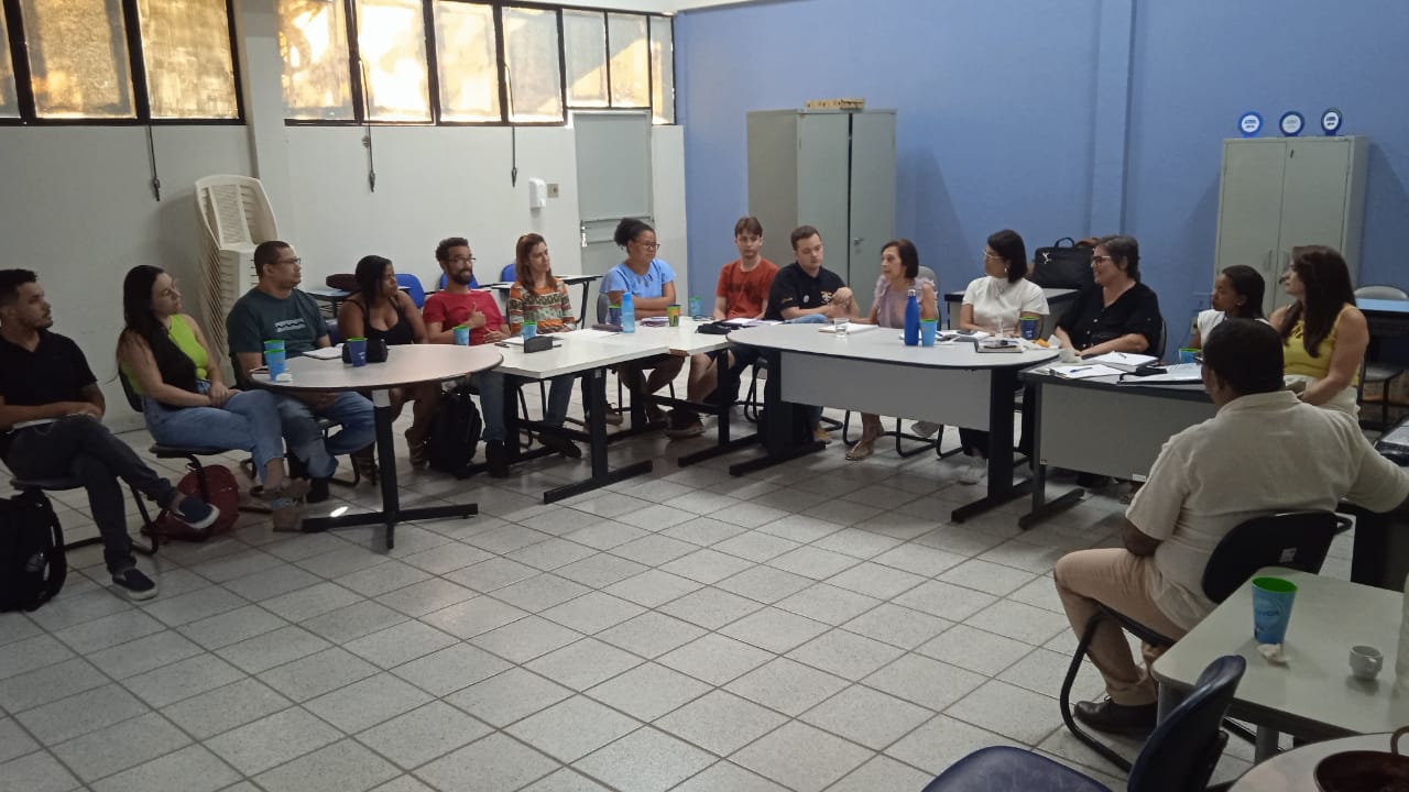 A atual coordenadora, professora Wildma Mesquita Silva, fez a abertura da reunião e abriu espaço para comemoração da Nota 5 recebida no processo de avaliação de renovação de reconhecimento do Ministério da Educação (MEC), realizada entre os dias 15 a 17 de abril de 2024, sendo esta a terceira vez consecutiva que o curso recebe a nota máxima no MEC. A professora Wildma reforçou que a nota é resultado de um amplo trabalho em equipe realizado pelo corpo docente, com apoio do Núcleo Docente Estruturante (NDE), do Setor de Gestão Pedagógica, da Diretoria de Educação a Distância, entre outros setores da instituição.