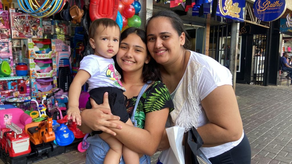 Danielly Ferreira, mãe da Nataly, de apenas um ano, e da Nicole, de 11 anos, contou que gostaria de comprar brinquedos para as meninas, contudo, a bebê, que ainda não entende a importância da data, já ganhou muitos brinquedos, já a mais velha, este ano pediu roupas ao invés de brinquedos.