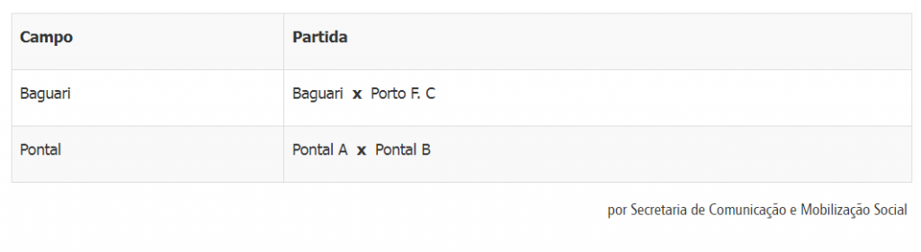 GOVERNADOR VALADARES – Neste domingo (8) tem jogos das semifinais do Campeonato Distrital e as partidas serão de forma simultânea, às 15 horas, nos campos de Baguari e Pontal. Os confrontos da semifinal prometem jogos emocionantes.