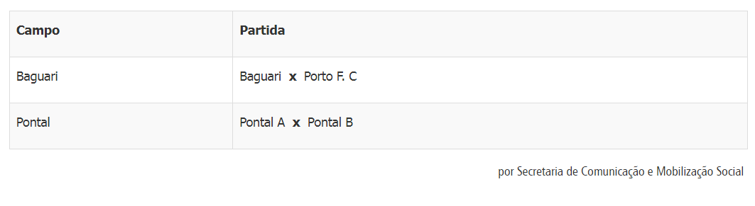 GOVERNADOR VALADARES – Neste domingo (8) tem jogos das semifinais do Campeonato Distrital e as partidas serão de forma simultânea, às 15 horas, nos campos de Baguari e Pontal. Os confrontos da semifinal prometem jogos emocionantes.