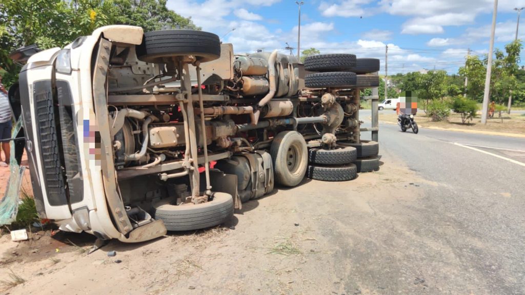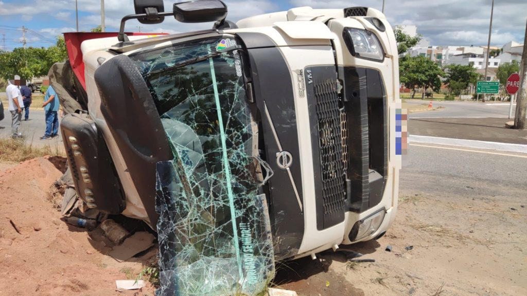 Segundo informações, um caminhão carregado de cascalho tombou no momento em que passava pela rotatória. O motorista e o ajudante ficaram feridos. Equipes do Serviço de Atendimento Móvel de Urgência (Samu-192) socorreram os dois.