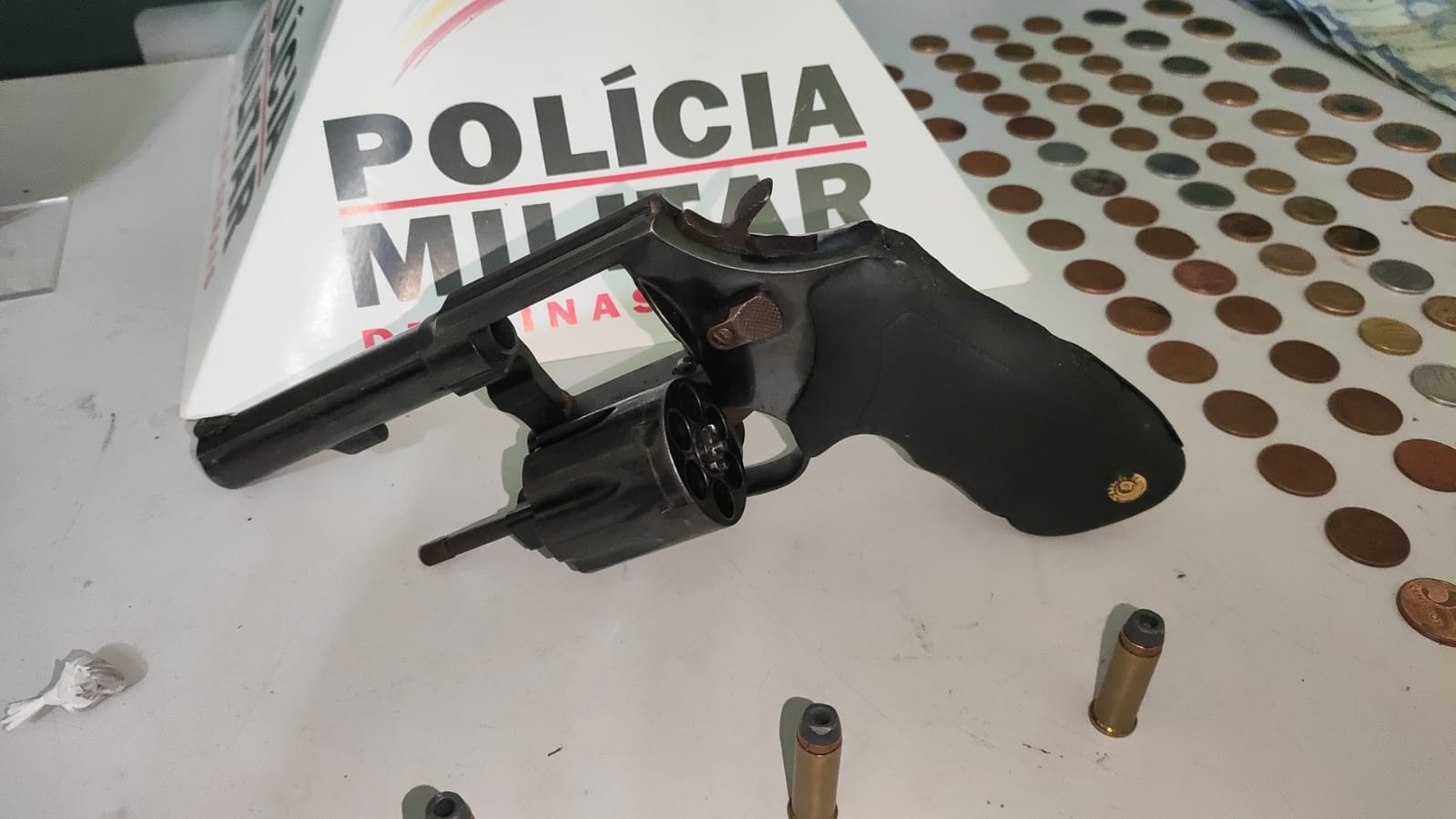 • Um revólver calibre 38 municiado com 6 cartuchos intactos;