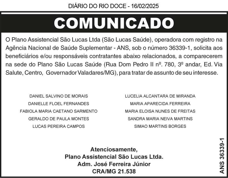 DIÁRIO DO RIO DOCE – 16/02/2025