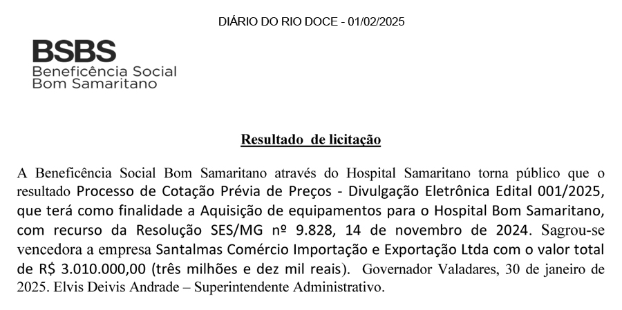 DIÁRIO DO RIO DOCE – 01/02/2025