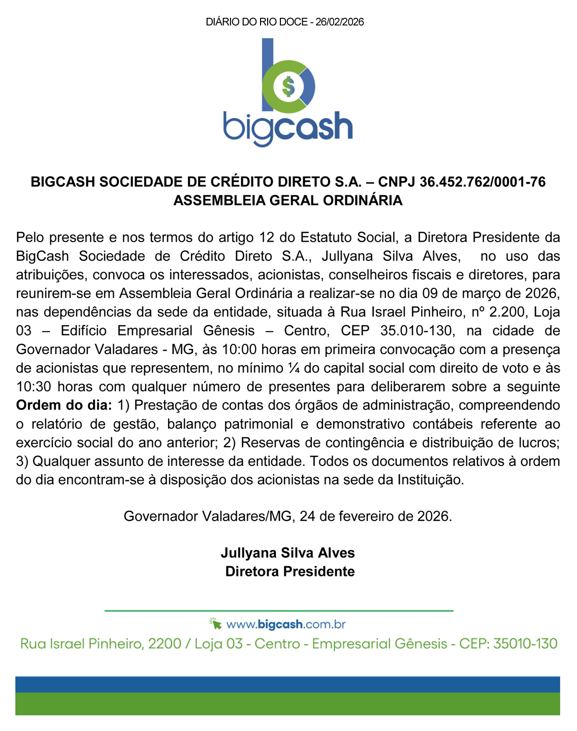DIÁRIO DO RIO DOCE – 26/02/2026