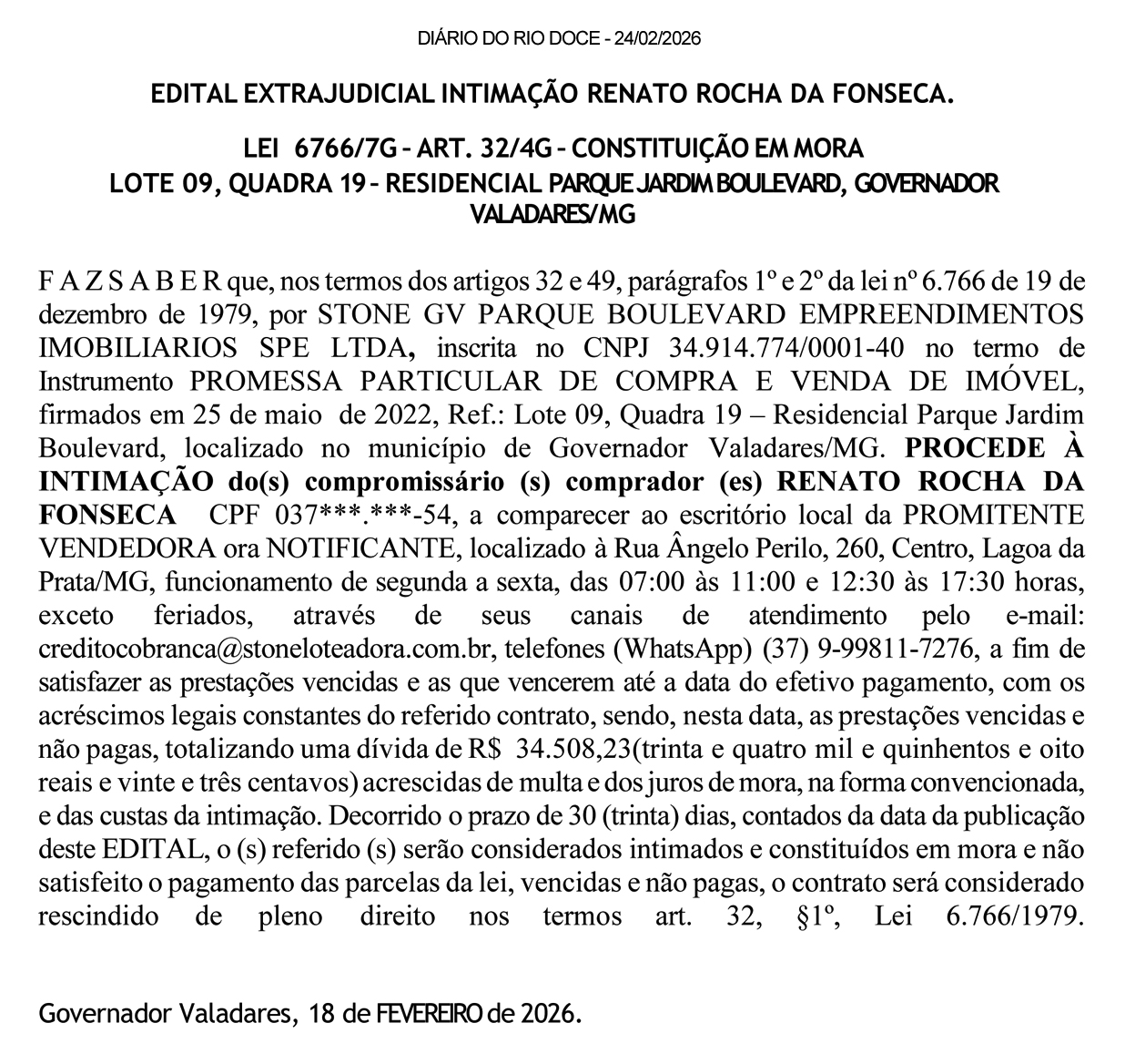 DIÁRIO DO RIO DOCE – 24/02/2026