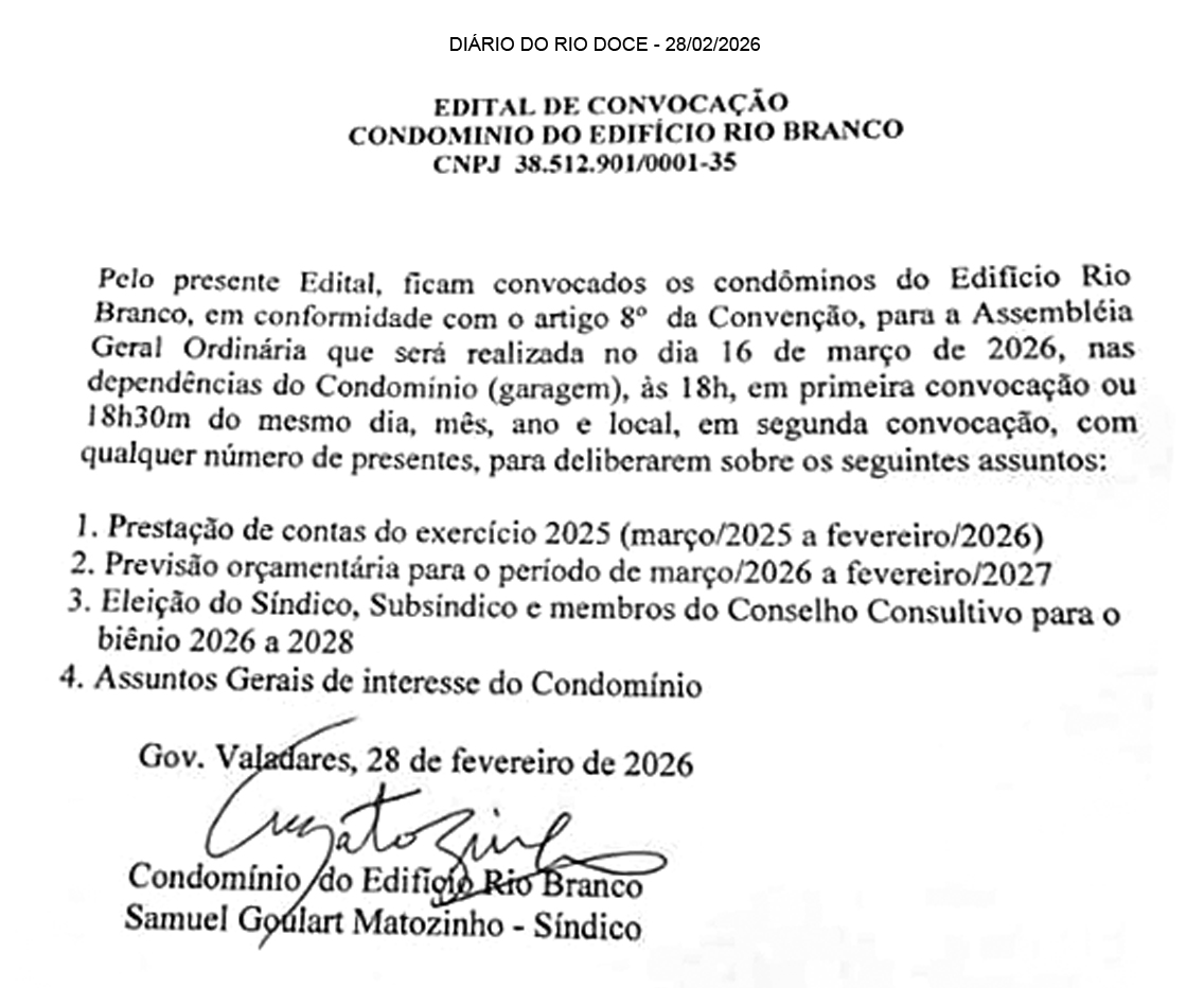 DIÁRIO DO RIO DOCE – 28/02/2026