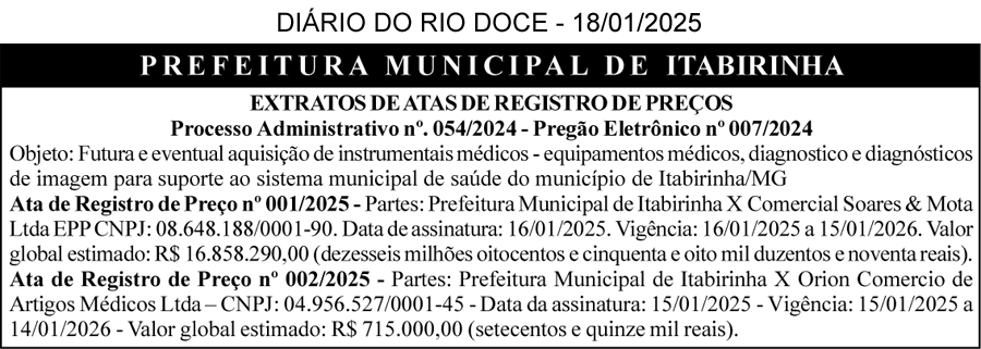 DIÁRIO DO RIO DOCE – 18/01/2025