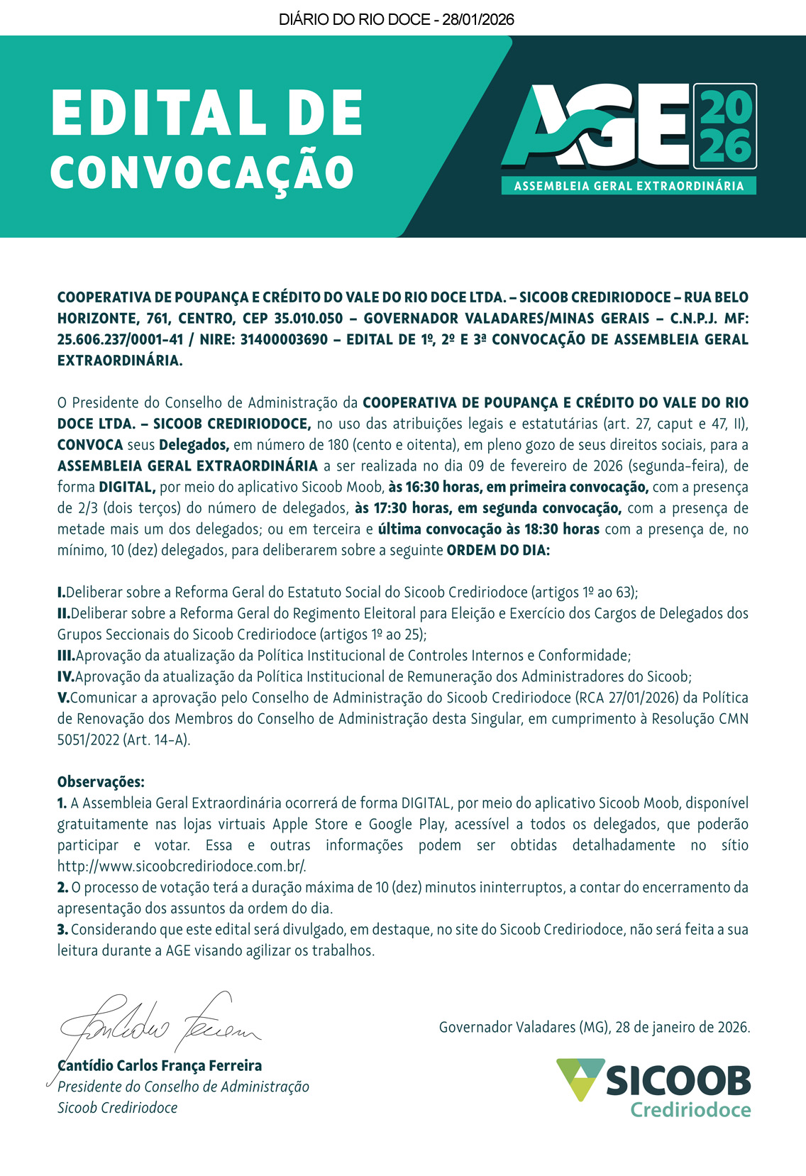 DIÁRIO DO RIO DOCE – 28/01/2026