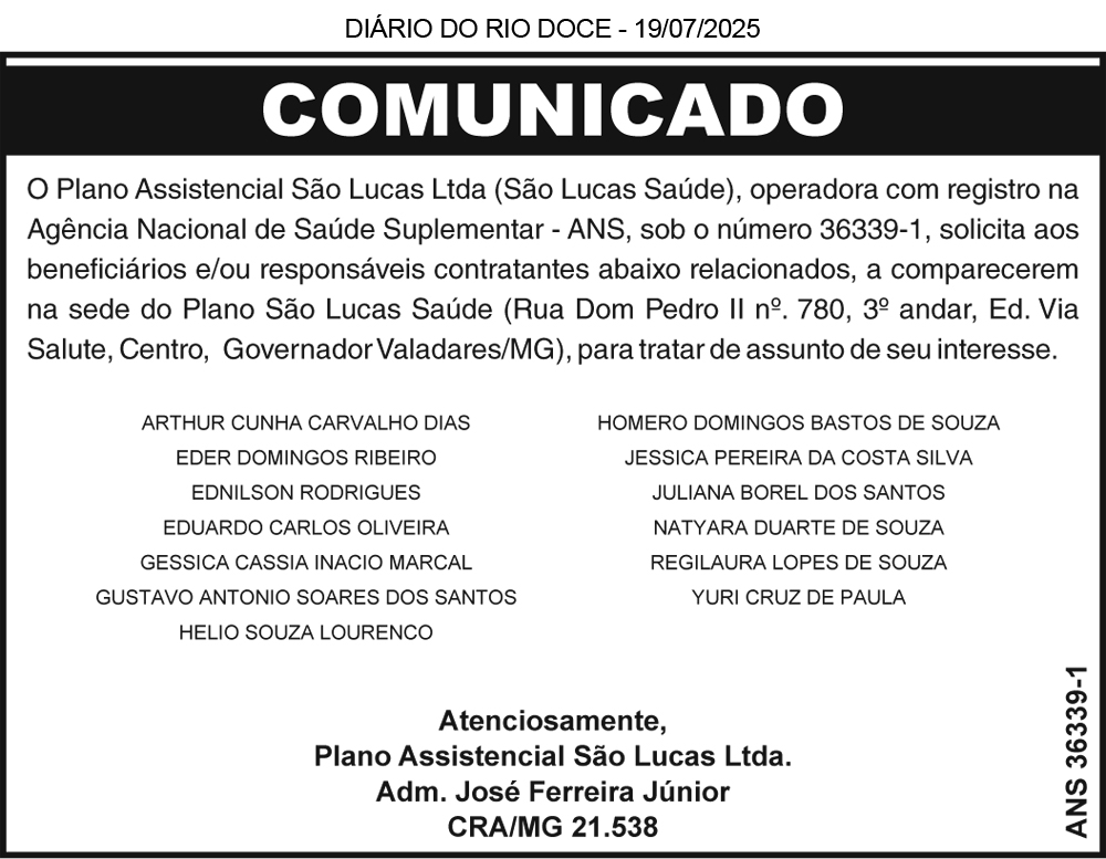 DIÁRIO DO RIO DOCE – 19/07/2025