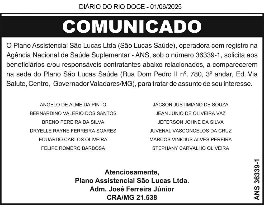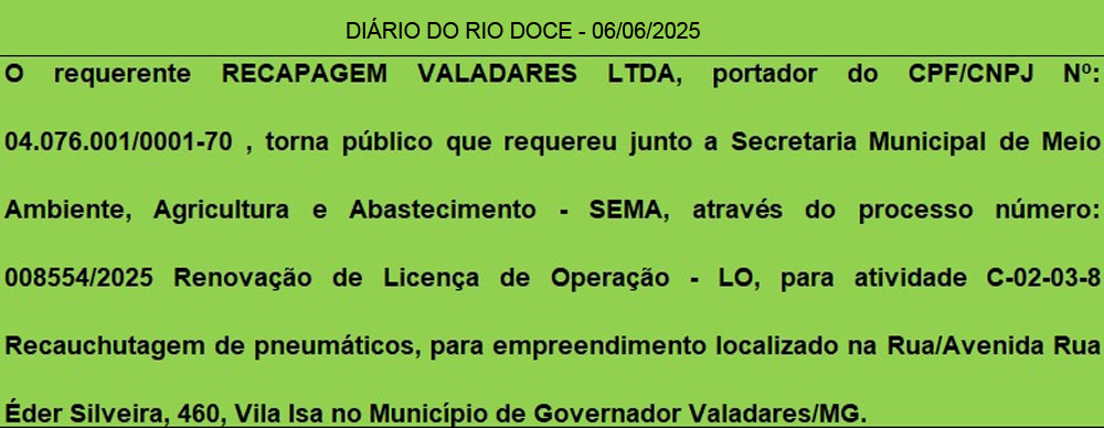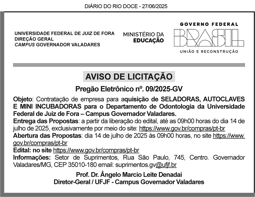 Governador Valadares/MG, 12 de junho de 2025.