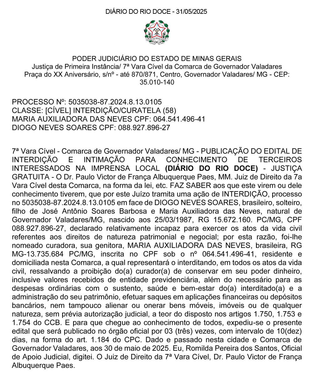 DIÁRIO DO RIO DOCE – 24/05/2025