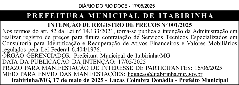 DIÁRIO DO RIO DOCE – 17/05/2025