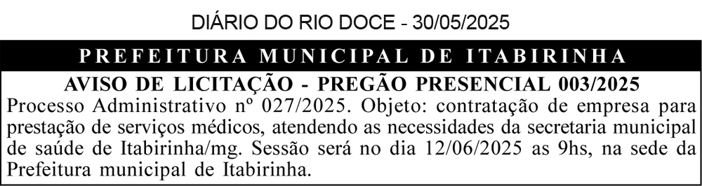 DIÁRIO DO RIO DOCE – 30/05/2025