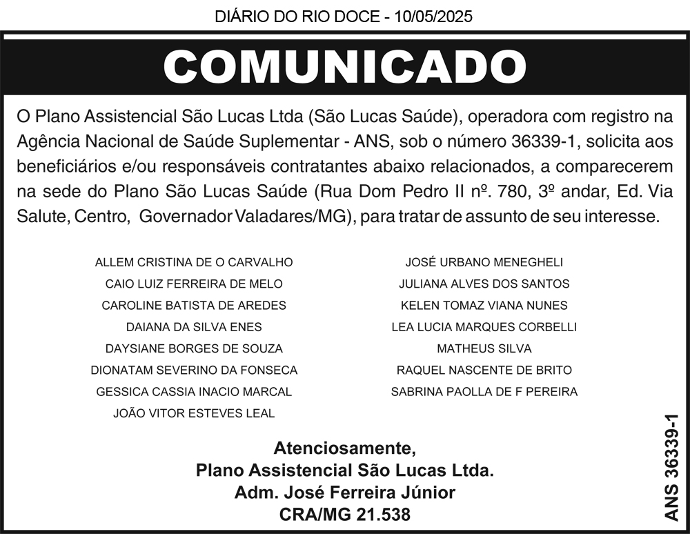 DIÁRIO DO RIO DOCE – 10/05/2025