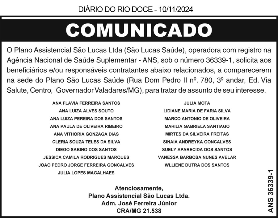 DIÁRIO DO RIO DOCE – 29/11/2024