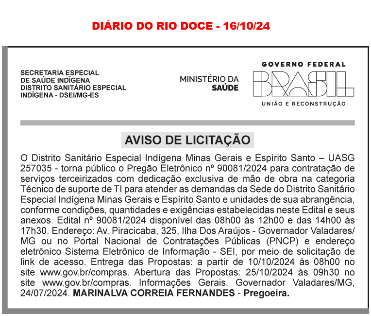 DIÁRIO DO RIO DOCE – 16/10/2024