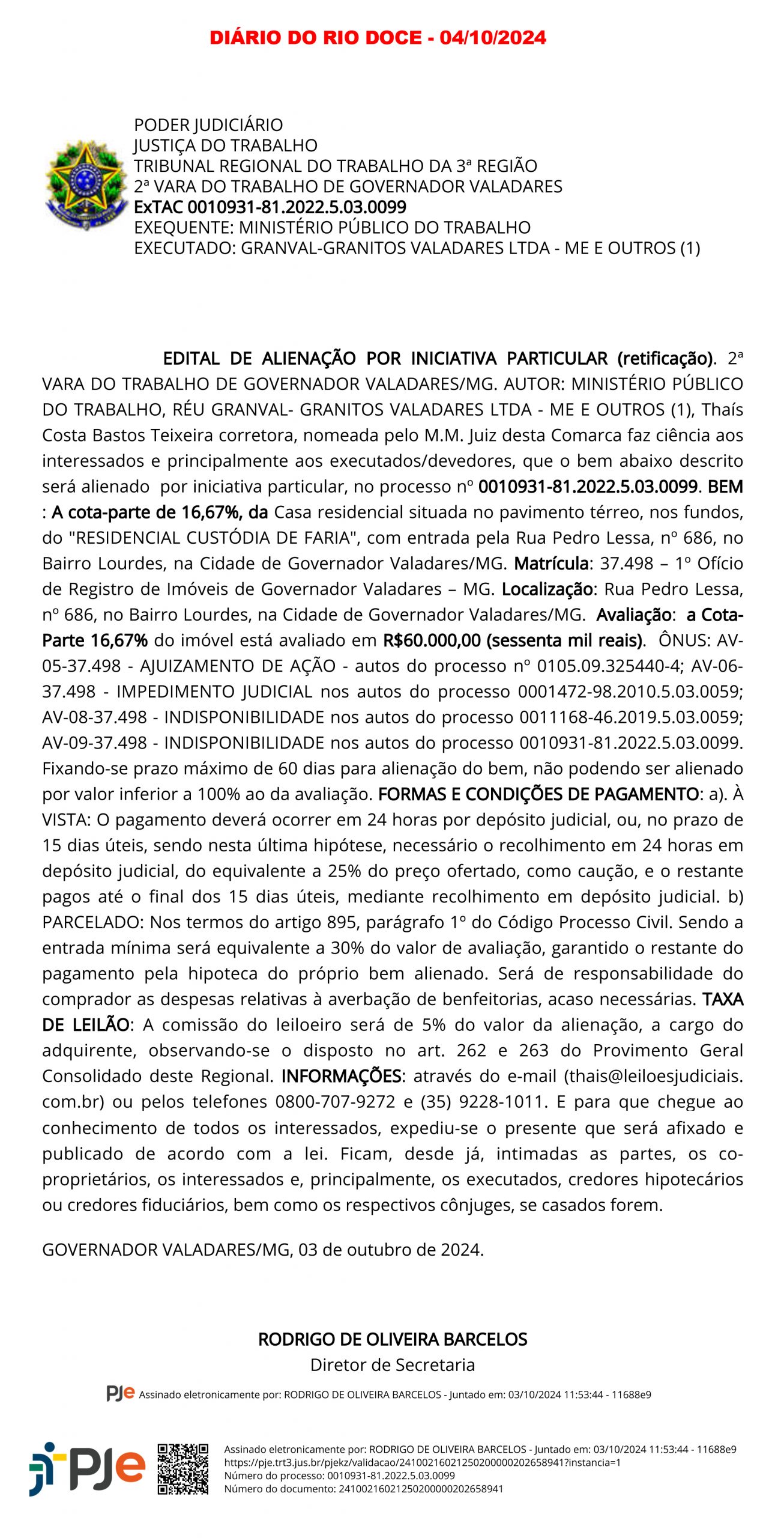 DIÁRIO DO RIO DOCE – 03/10/2024