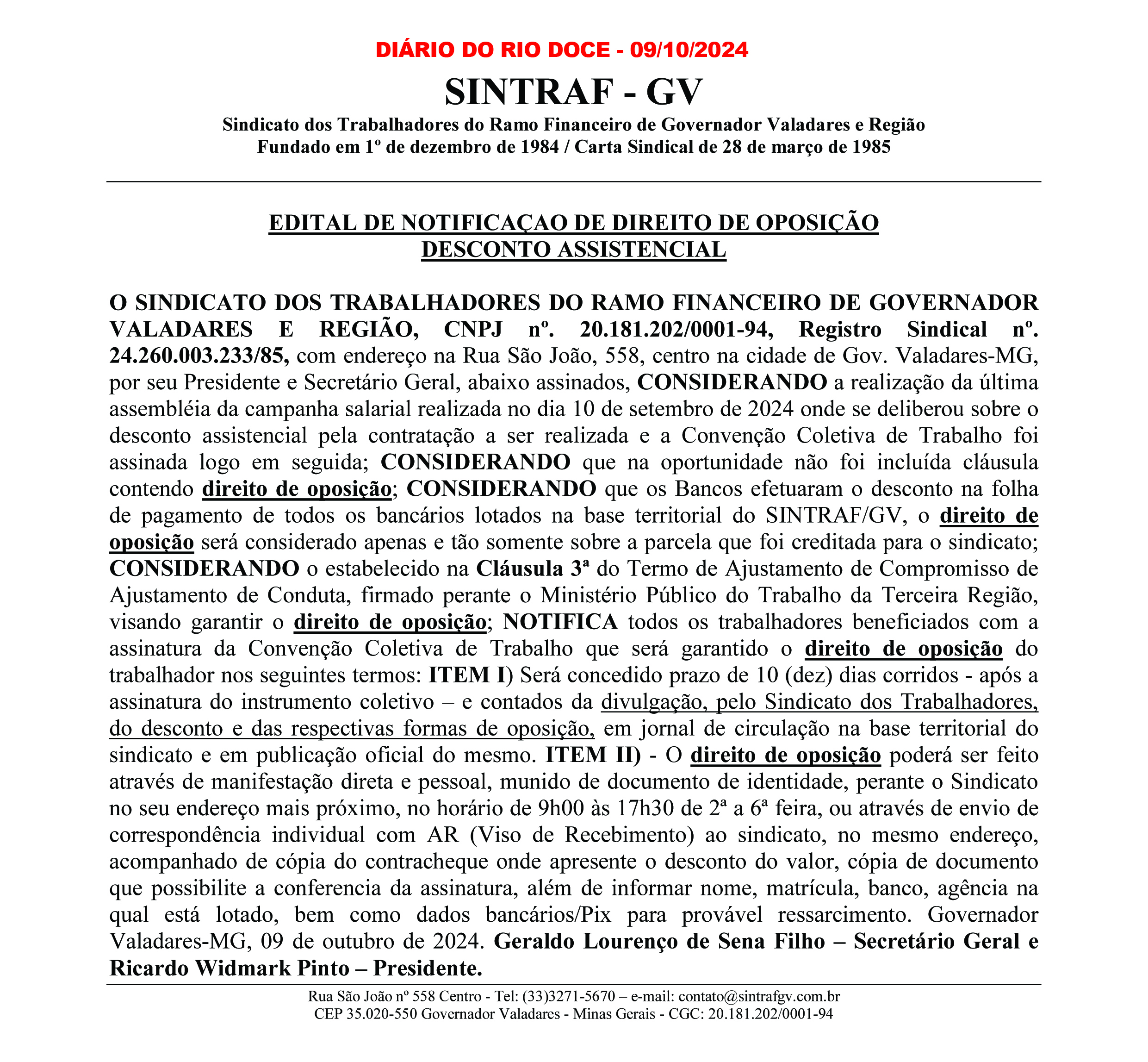 DIÁRIO DO RIO DOCE – 23/10/2024