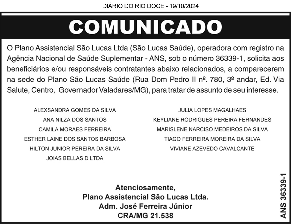 DIÁRIO DO RIO DOCE – 19/10/2024