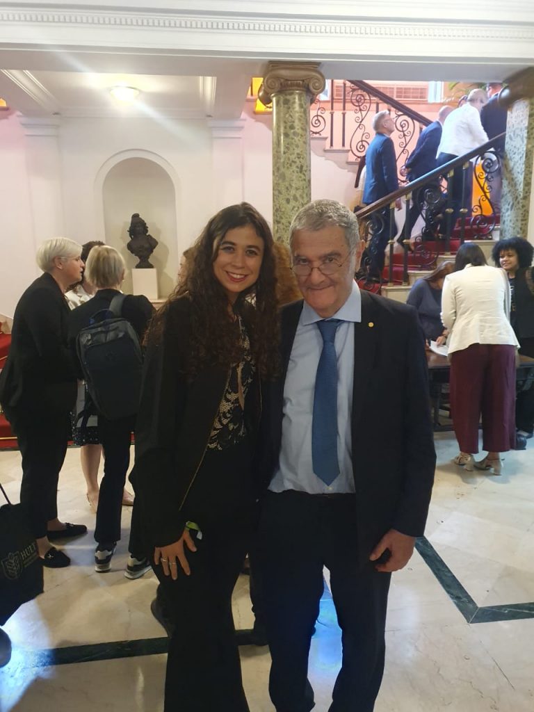 Além do físico francês e Ariana, a mesa-redonda teve as presenças de estudantes do Peru e da Colômbia, da reitora da Universidade do Estado do Rio de Janeiro (UERJ, que sediou o evento), Gulnar Azevedo e Silva; e da líder sênior de Análise Política da UNESCO, Anna Cristina D’Addio. “Conversamos sobre a importância que a universidade tem não apenas na educação e formação de alunos, mas no apoio e incentivo na busca da liberdade de pensamento, para irmos longe através da ciência e pesquisa”, relatou Ariana.