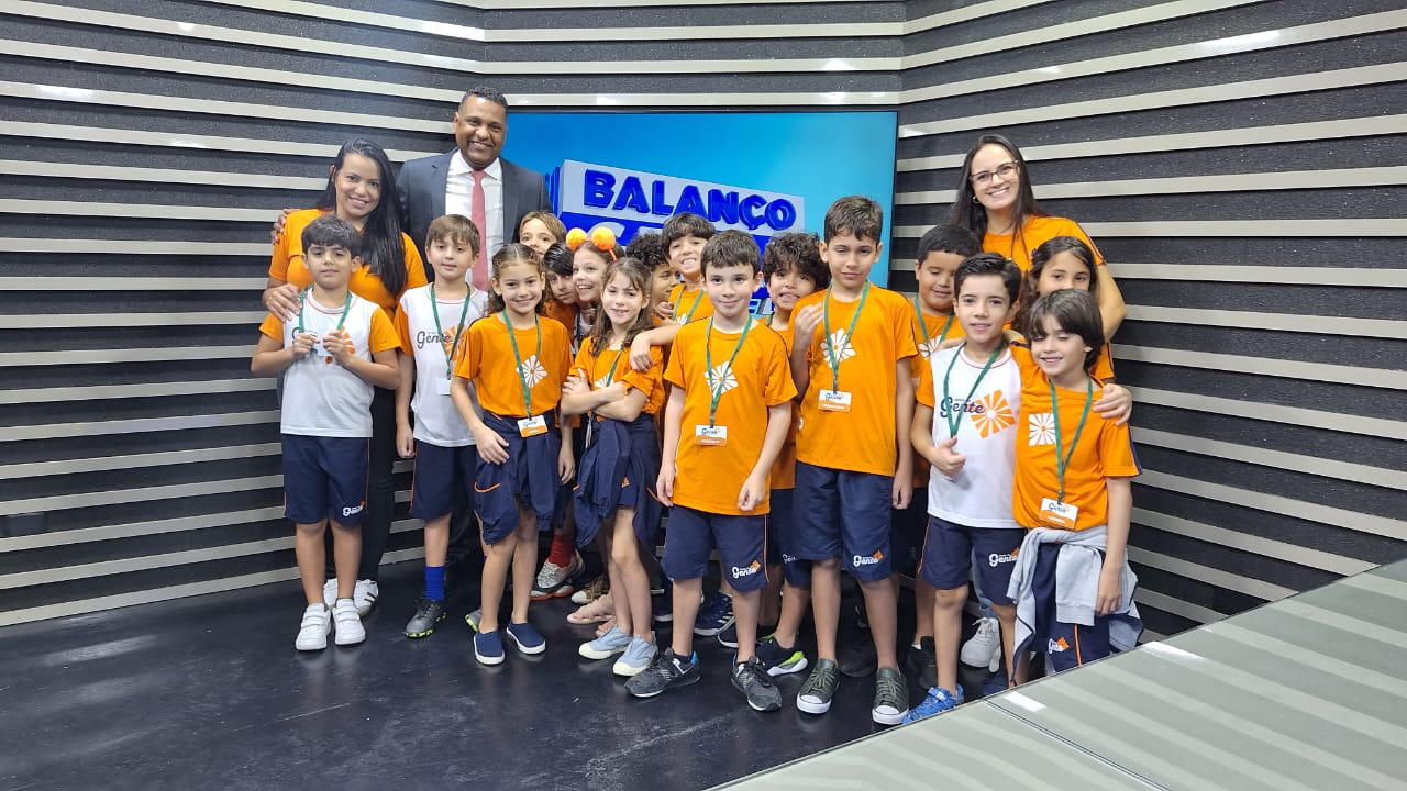 GOVERNADOR VALADARES – “Trabalhamos em sala o gênero textual telejornal, e por isso, levamos as crianças para conhecer na prática”, disse a professora Jordânia Lopes. Foi esse um dos motivos que uma turma do 3º ano da Escola da Gente de Governador Valadares (MG), visitou na segunda-feira (26) a TV Leste, afiliada RECORD, no bairro Vila Rica.