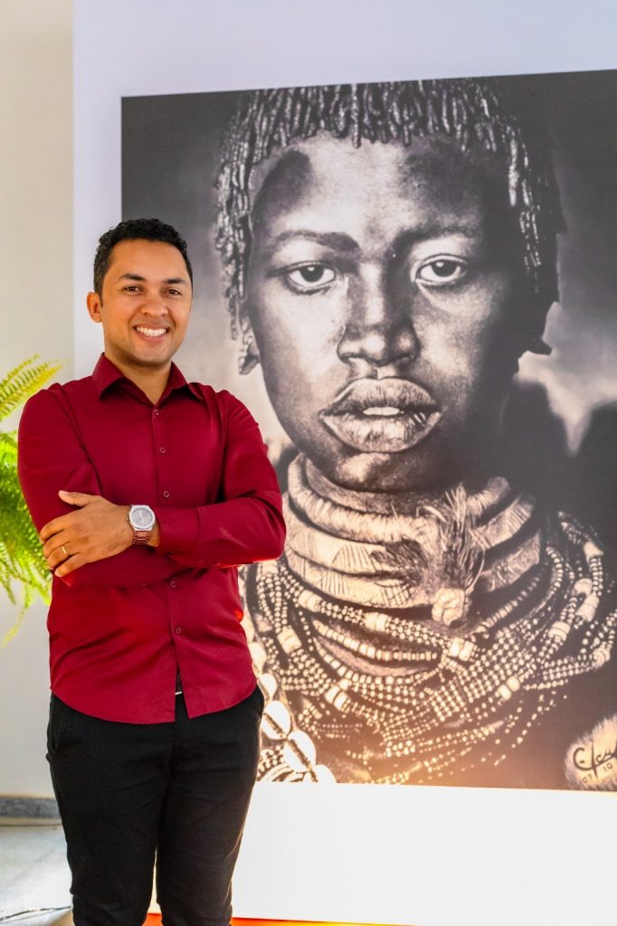 A obra hiper-realista “Olhar Africano”, de Eduardo Carvalho, é a obra principal da exposição. Eduardo abrasileirou seus traços e nos faz refletir para além da nossa história. “Todos os desenhos demonstram o estilo realista e hiper-realista, com grande apelo às questões sociais e do cotidiano. Temos uma história rica em contradições, que se traduziram em nossos espaços urbanos. A força de nossa cultura vem de nossa diversidade. Somos um povo do degredo, da fuga e do desterro em nossa própria terra”, destaca o artista Eduardo.