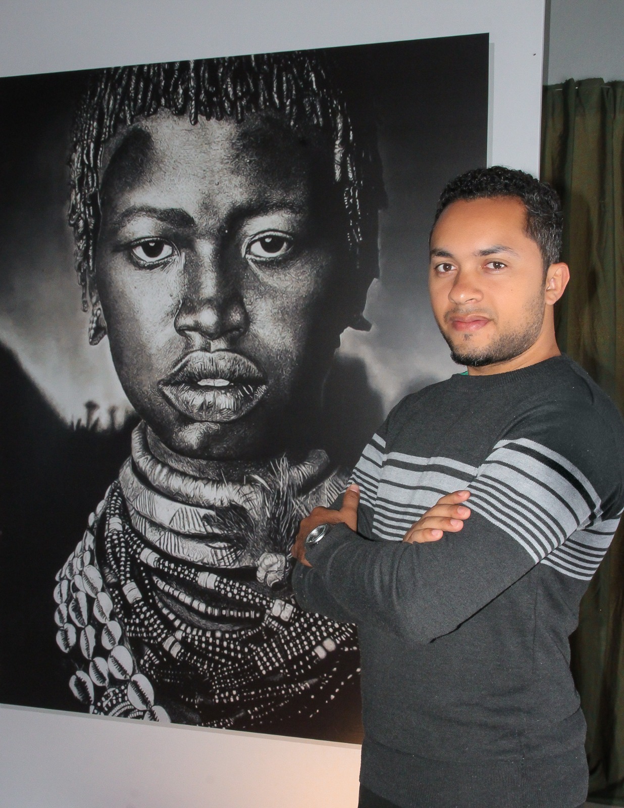 A obra hiper-realista “Olhar Africano”, de Eduardo Carvalho, é a obra principal da exposição. Eduardo abrasileirou seus traços e nos faz refletir para além da nossa história. “Todos os desenhos demonstram o estilo realista e hiper-realista, com grande apelo às questões sociais e do cotidiano. Temos uma história rica em contradições, que se traduziram em nossos espaços urbanos. A força de nossa cultura vem de nossa diversidade. Somos um povo do degredo, da fuga e do desterro em nossa própria terra”, destaca o artista Eduardo.