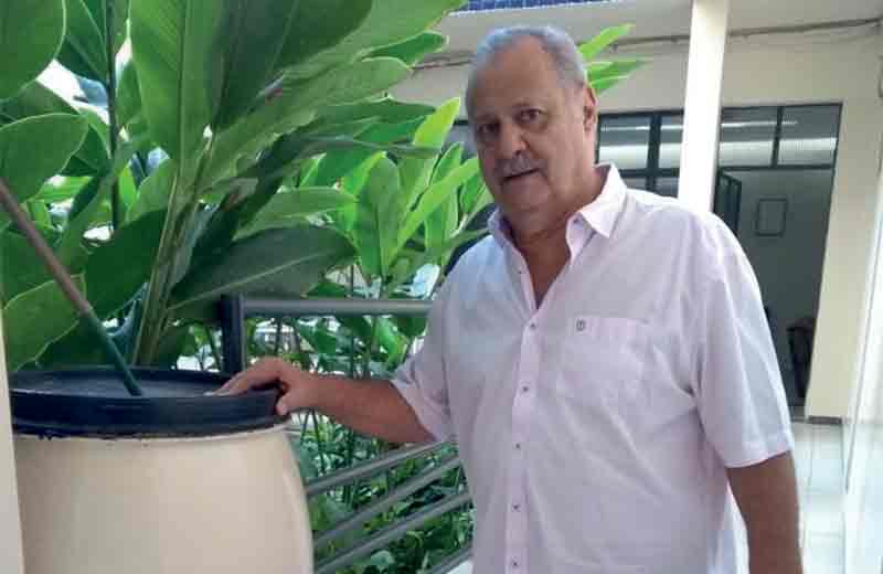 “Uma vez saí andando pela faculdade e observei uma cortina de água que se formava, vindo de todos os ares-condicionados das salas de aula. Reparei que era muita água que saía pelos canos. Além de se espalhar toda pelo chão, parecia um desperdício ver aquela água ir embora. Diante disso, tive a ideia de canalizar essa água, através de canos e mangueiras, para quatro tambores de uma média de 220 litros. Tomei o cuidado de tampar todos os tambores primeiro, para evitar focos de dengue. Essa água é usada na limpeza da faculdade”, explicou Altino.