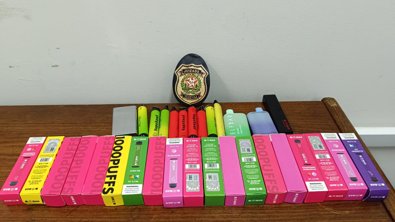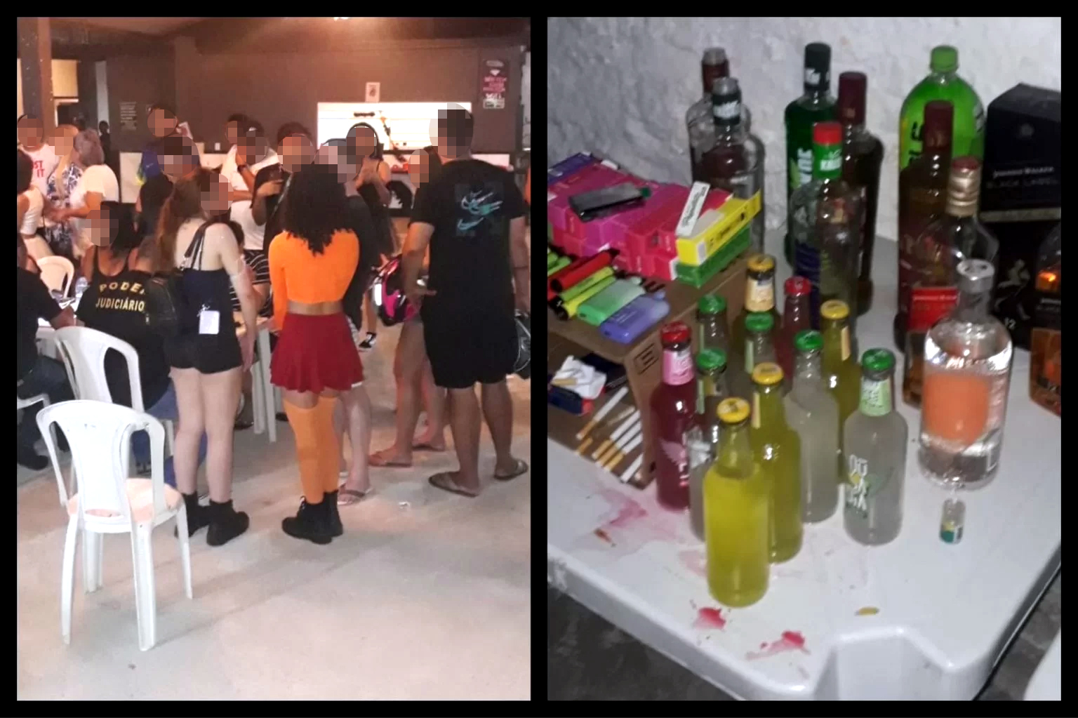 No local, o Juizado da Infância e Juventude apreendeu várias garrafas de bebidas alcoólicas e cigarros eletrônicos. A organizadora do evento foi autuada por falta de alvará judicial, bem como o responsável pela casa de eventos.