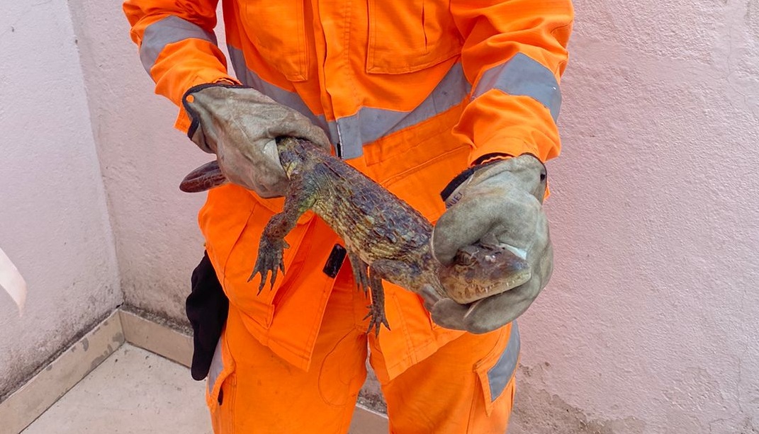 GOVERNADOR VALADARES – A equipe do Corpo de Bombeiros capturou um filhote de jacaré em uma residência no bairro Jardim Atalaia, em Valadares, no final da tarde desse domingo (10).
