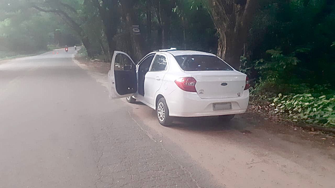 Após a abordagem, a polícia apreendeu o automóvel, bem como as armas e as drogas.