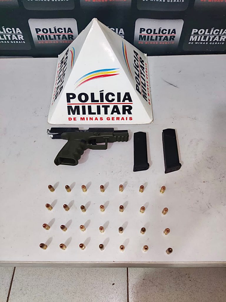 Pistola calibre 9mm com numeração suprimida municiada com 14 cartuchos intactos;