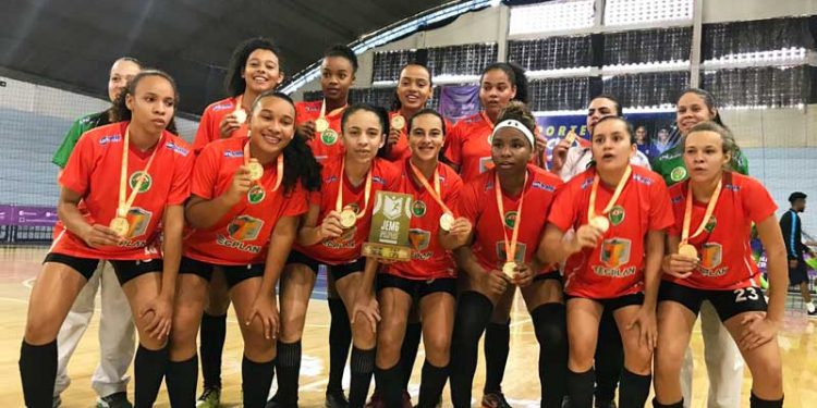 A equipe de futsal feminino do Nelson de Sena foi campeã e conseguiu vaga para os jogos Escolares da Juventude, a serem disputados em Blumenau/SC.FOTO: Divulgação