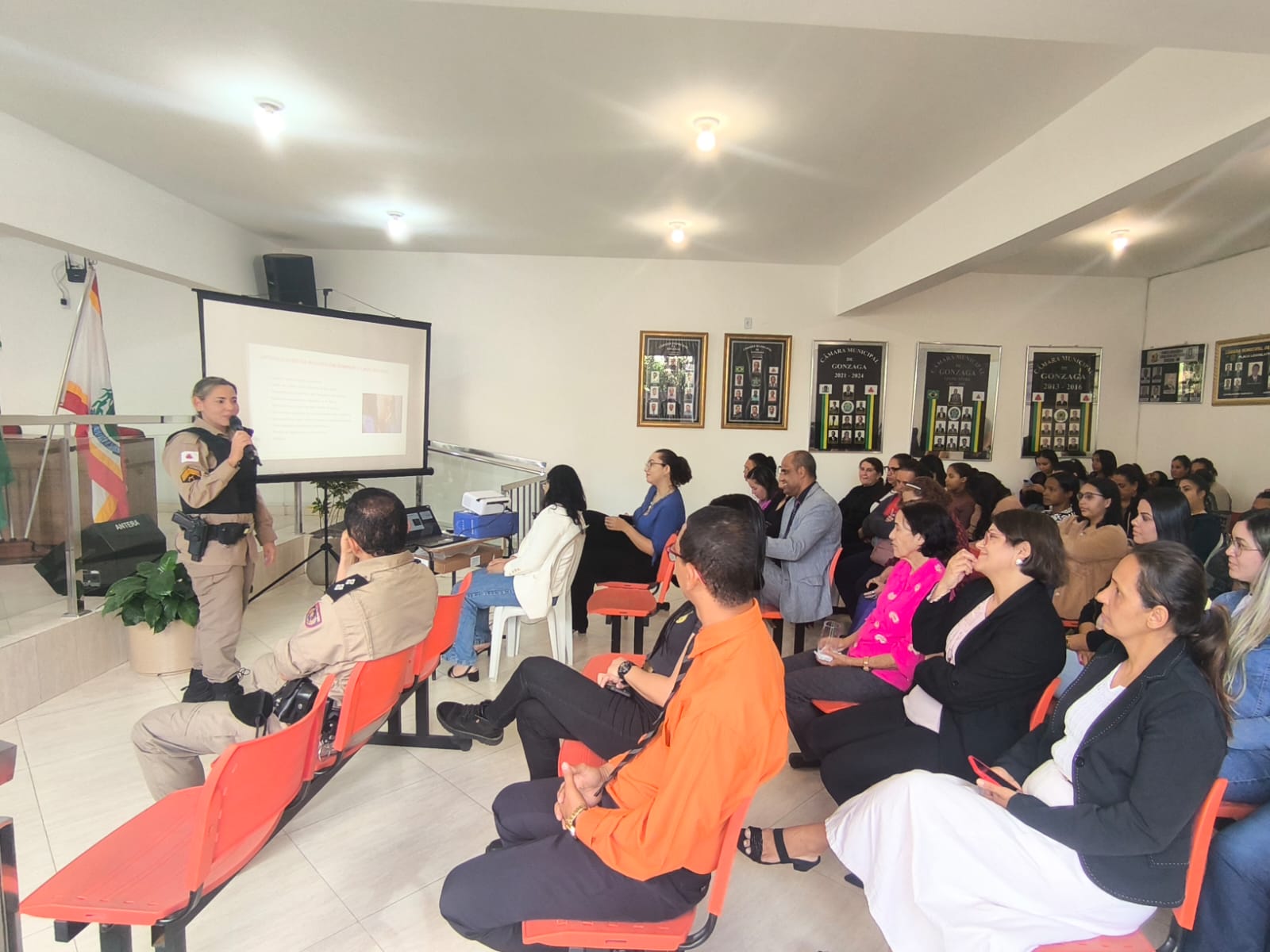 As palestrantes do seminário foram a 3ª Sargento Ana Paula, a escrivã da Polícia Civil Júlia e a psicóloga do CRAS Jeisiane, que abordaram temas como: