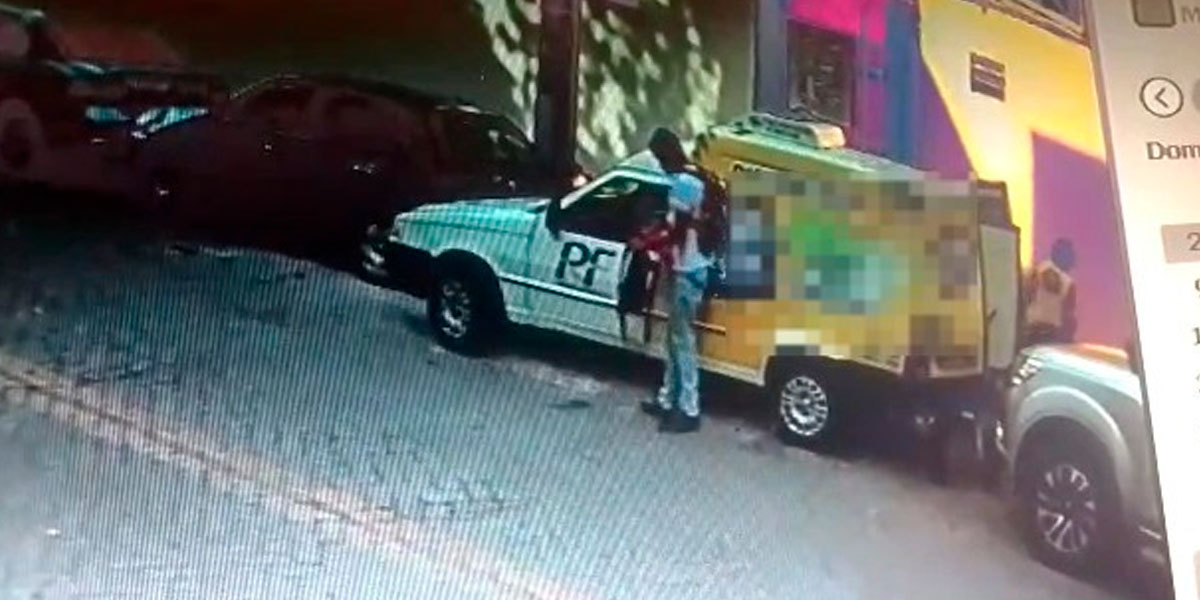 Aproveitando da distração da vítima, um homem se aproximou do veículo, abriu a porta, furtou uma mochila com um notebook e fugiu. A ação foi flagrada por câmeras de segurança.