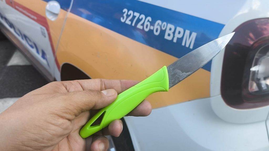 A polícia apreendeu a faca utilizada na agressão. O homem foi preso e encaminhado para a Delegacia de Polícia.
