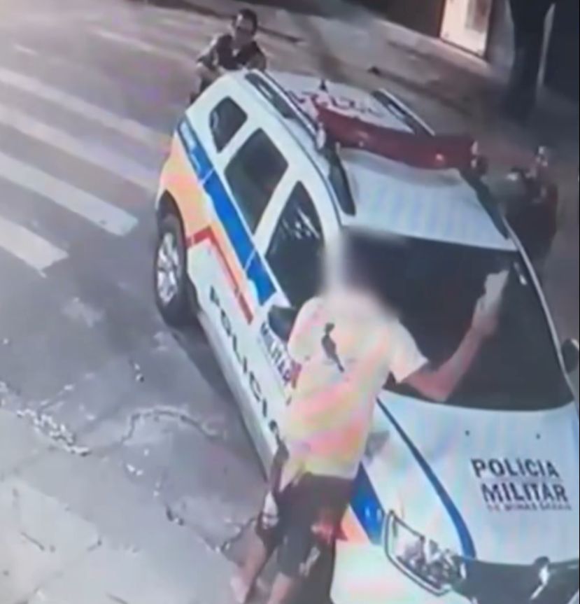 Câmeras de segurança gravaram toda a ação. As câmeras mostraram o autor se aproximando e batendo na viatura. Dois policiais militares que estavam nas proximidades tentaram deter o homem, mas ele conseguiu fugir.