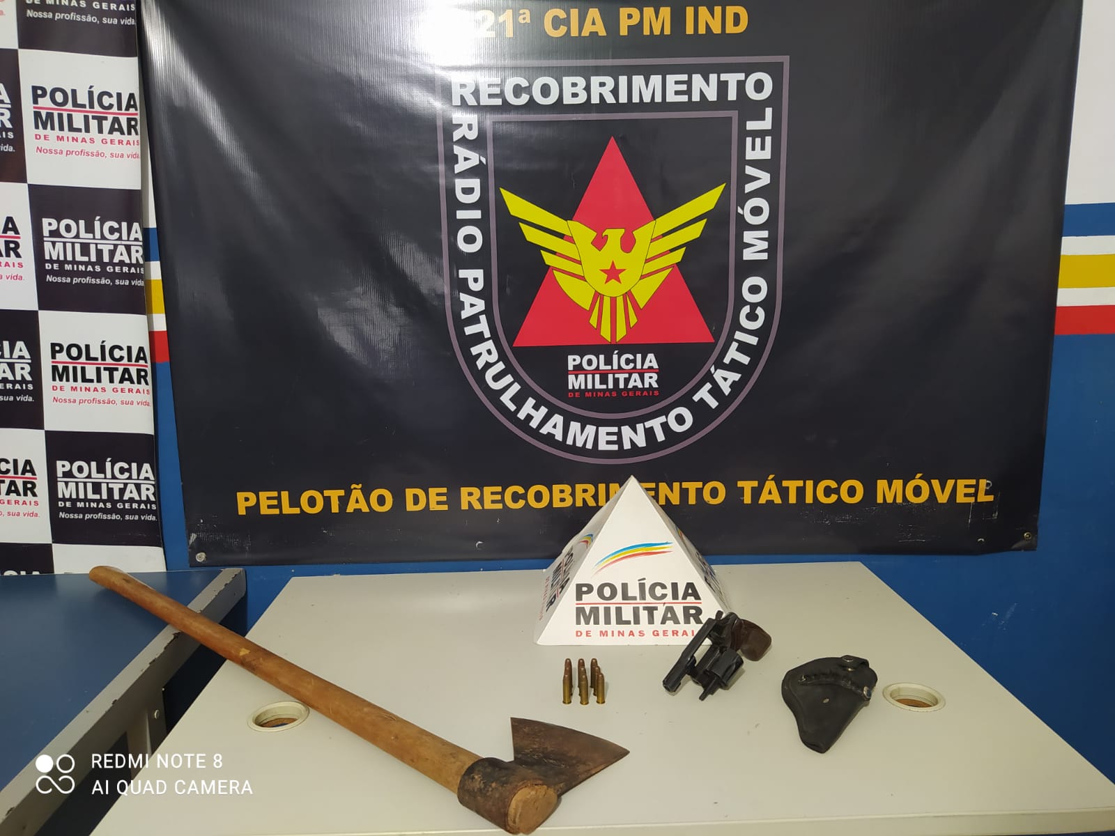 Ainda segundo a PM, no sábado o homem voltou a procurar a mulher para ameaçá-la novamente. Desta vez, a polícia encontrou na residência do casal um revólver de calibre 38 com nove munições e o machado utilizado nas ameaças. O suspeito foi preso.