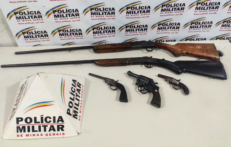 A Polícia Militar prendeu um homem por posse ilegal de armas de fogo. A ocorrência foi registrada nessa quinta-feira (7), em Barra do Cachoeirão, zona rural de Resplendor. Após receber a informação sobre as armas, policiais militares foram até o local informando.