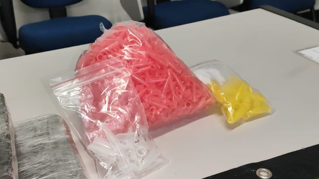 Então a PM foi até o local. A mãe e o irmão do suspeito receberam os militares. Em seguida, ao abordar o suspeito, eles apreenderam no local: