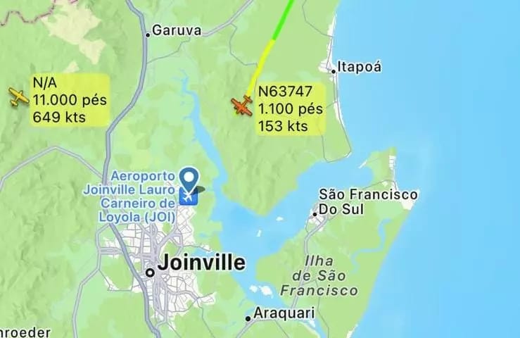A aeronave pertencia a uma construtora mineira chamada Conserva de Estradas LTDA e tinha capacidade para seis pessoas, um piloto e cinco passageiros. De acordo com o Aeroporto de Joinville, o avião não tinha pouso previsto para o local. A equipe de controle aéreo do aeroporto, porém, informou que o piloto entrou em contato por volta das 18h. O teor da conversa não foi divulgado.