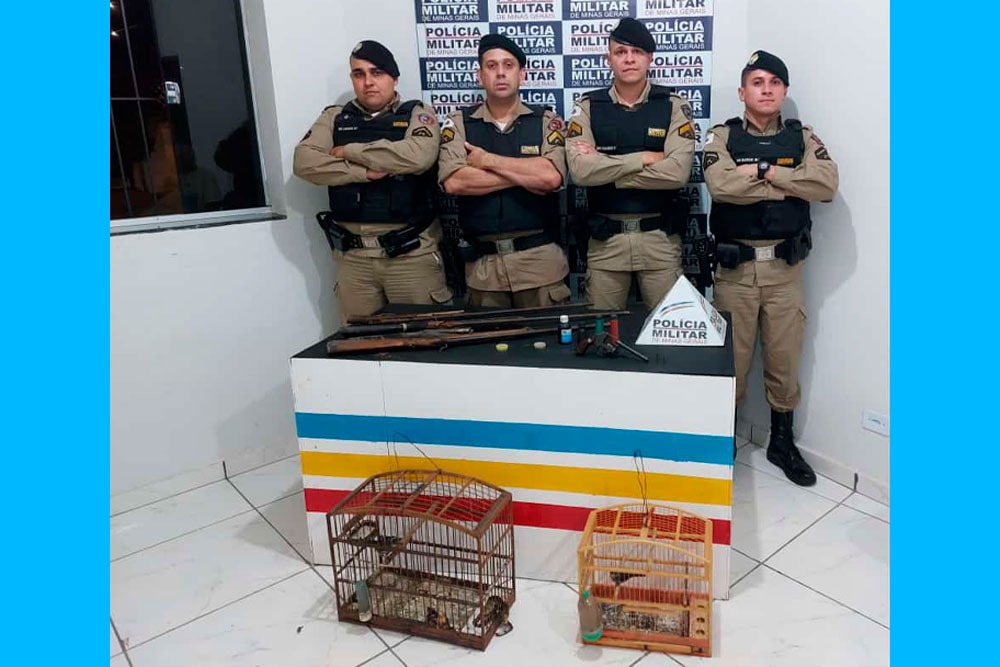 Além do material, os policiais também encontraram no local dois pássaros silvestres. O idoso confessou a posse das armas sem registro bem como não possuir autorização legal para manter as aves em cativeiro.