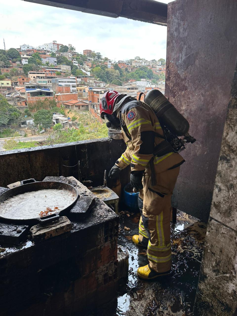 No local, os bombeiros encontraram diversos botijões de gás, o que exigiu atenção redobrada para evitar riscos maiores.