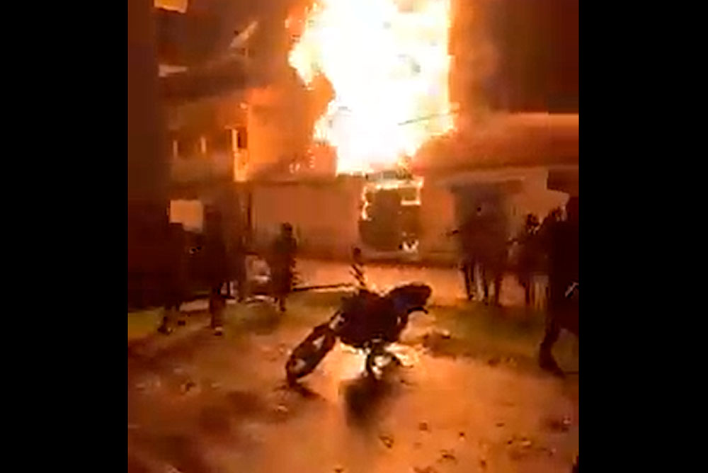 Vizinhos da oficina conseguiram apagar as chamas com o auxílio de um caminhão-pipa. Felizmente, ninguém ficou ferido.