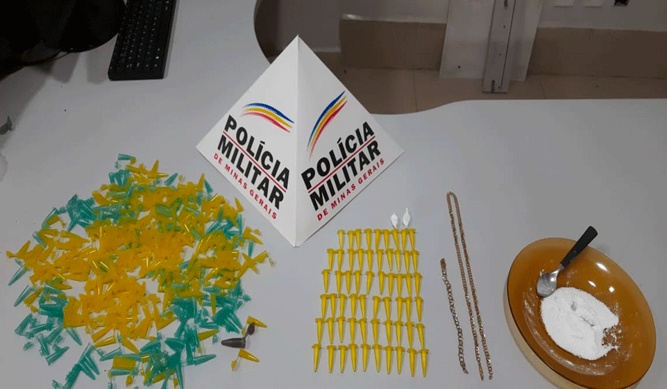 No interior do imóvel foram localizados, ainda, 59 pinos cheios e dois papelotes de cocaína, 301 pinos vazios, uma pulseira e um cordão. Diante disso, o suspeito foi preso e encaminhado à Delegacia, juntamente com o material apreendido na casa.