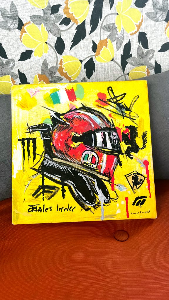 Fora de casa, as telas da adolescente já foram destaque em mais de 20 exposições pelo país. O estilo que mistura cores vibrantes e diferentes técnicas de pintura resulta em quadros que chamam a atenção de qualquer um que olhe de relance. As inspirações são as mais diversas possíveis: o gosto musical pelo rock, a admiração pelos artistas norte-americanos Billie Eilish e The Weekend, o envolvimento com esporte, seja jogando basquete ou acompanhando as corridas de F1. São ideias que surgem de forma espontânea que revela em tela a relação da jovem artista com o mundo.