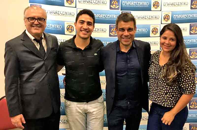 Médico, franqueador e fundador da Emagrecentro, Dr. Edson Ramuth; os proprietários da Emagrecentro GV, Hugo Costa e Isabela Oliveira (gravidíssima do baby Marcos Luiz); e Dr. Vendas num treinamento em São Paulo. Sucesso!