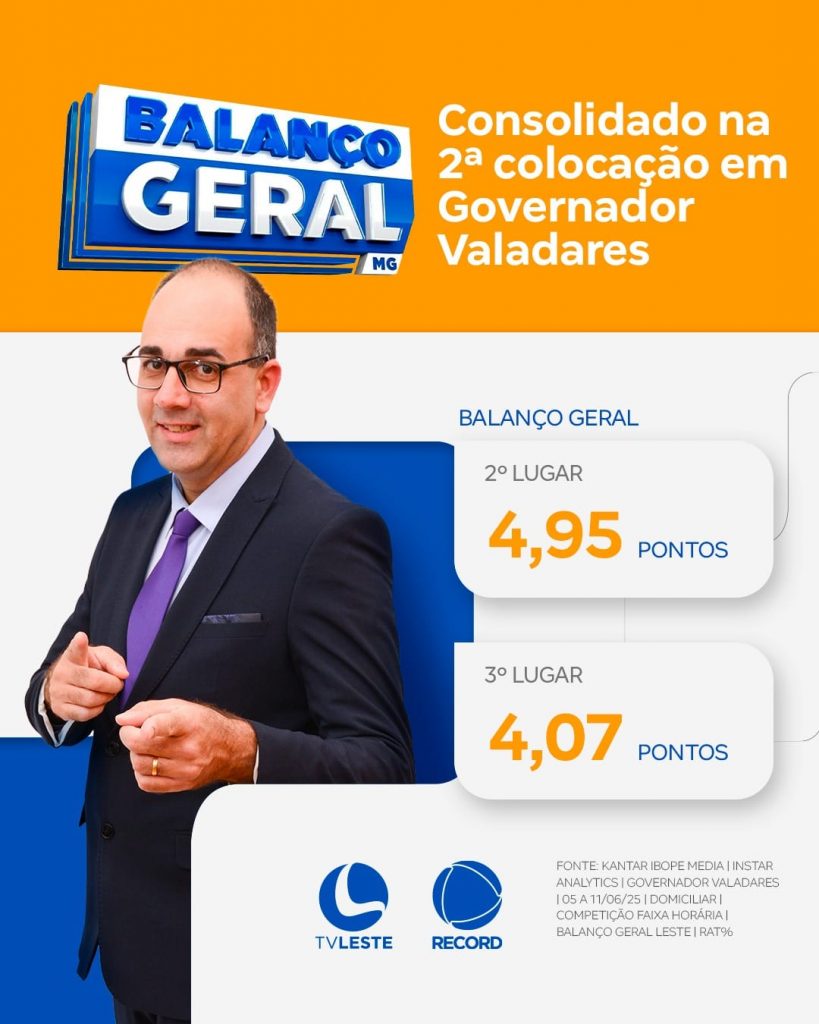 “A pesquisa da Kantar Ibope confirma aquilo que vemos diariamente nas ruas, nas redes e no relacionamento com os anunciantes: o Balanço Geral é um programa forte, popular, confiável e extremamente conectado com a realidade das pessoas. Estar consolidado na vice-liderança em Governador Valadares mostra que investir em jornalismo local de qualidade gera resultado editorial, comercial e institucional para toda a região.”
