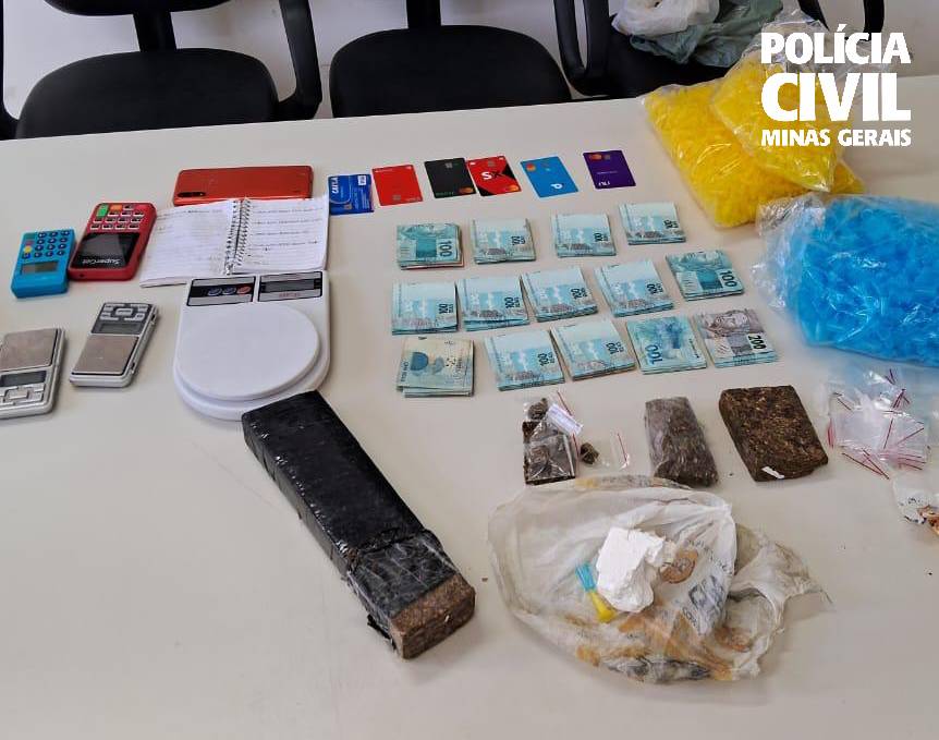 Durante as buscas, os policiais civis apreenderam uma pistola calibre 380, um carregador e 94 munições de mesmo calibre, R$ 14,4 mil, seis cartões de instituições financeiras diversas, duas máquinas de cartão assim como três balanças de precisão, um quilo de maconha, 100 gramas de cocaína e três pacotes contendo microtubos que podem ser utilizados para acondicionar entorpecentes.